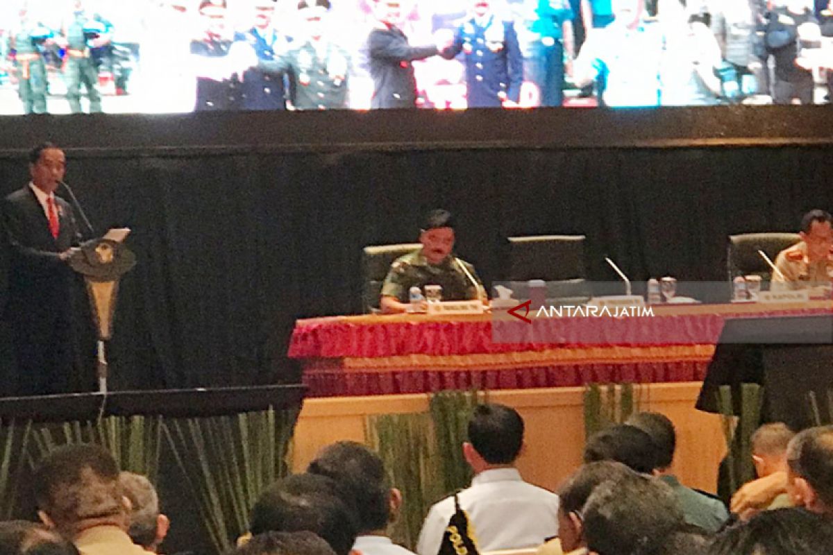Jakarta, (Antara) - Presiden Joko Widodo memberikan pengarahan kepada Pimpinan Tentara Nasional Indonesia (TNI) dan Kepolisian Negara Republik Indonesia (Polri) di Aula Gedung Gatot Soebroto, Mabes TNI, Cilangkap, Jakarta Timur.