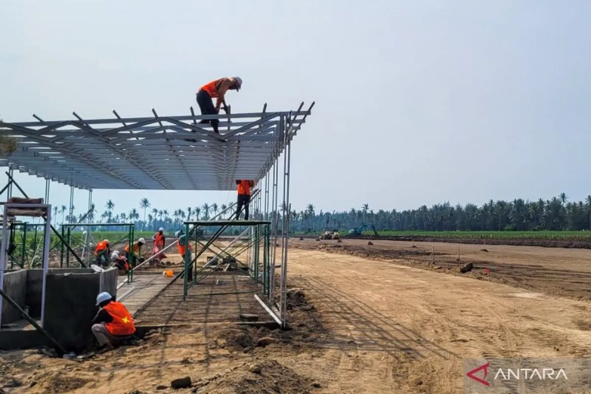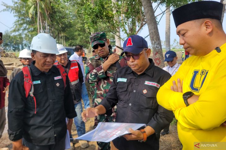 Situbondo (ANTARA) - Bupati Situbondo Yusuf Rio Wahyu Prayogo meninjau langsung progres pembangunan landasan pacu atau runway Bandara KHR As'ad Syamsul Arifin (pahlawan nasional) di kawasan Pantai Banongan Kabupaten Situbondo, Jawa Timur, Rabu.