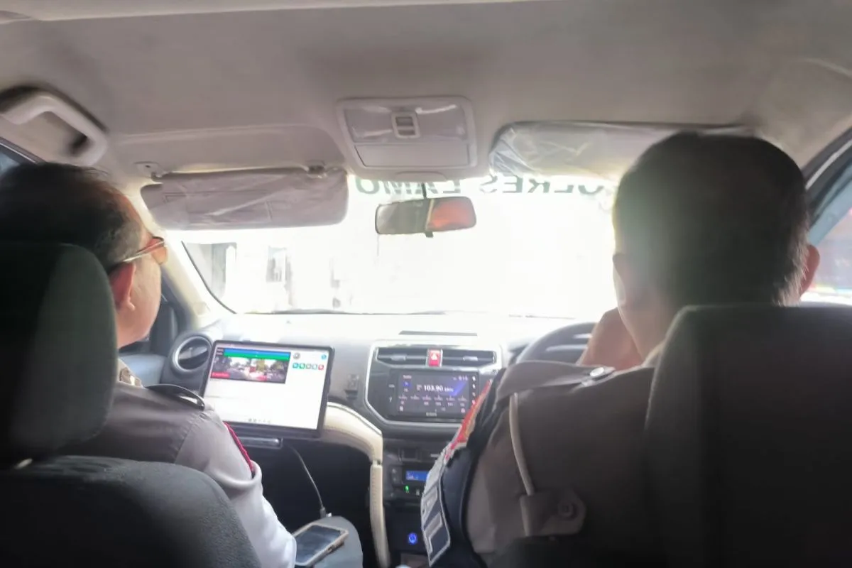 Foto Arsip: Petugas kepolisian saat memantau potensi pelanggaran lalu lintas melalui sistem ETLE mobile dari dalam mobil patroli di Lamongan, Jawa Timur. (ANTARA/HO-Humas Polres Lamongan) (ANTARA/HO-Humas Polres Lamongan)
