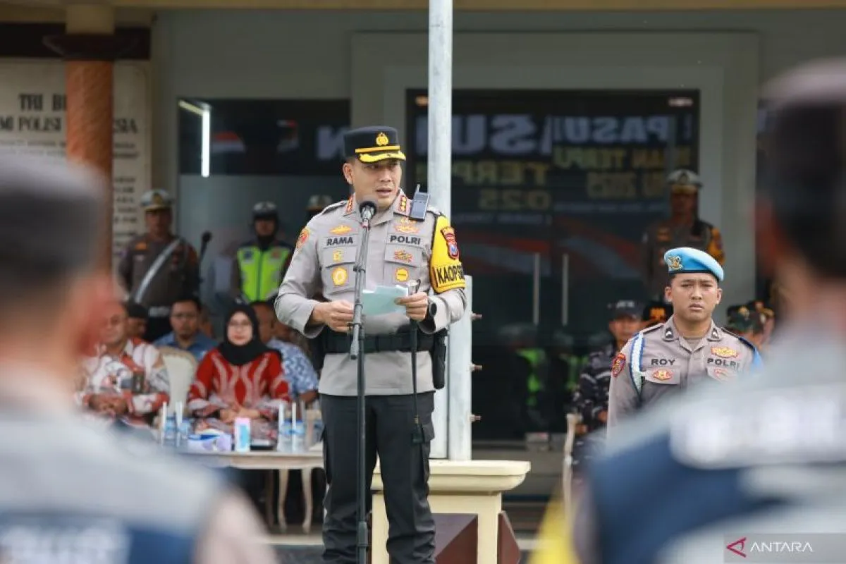 Kapolresta Banyuwangi Kombes Pol Rama Samtama saat memberikan arahan kepada petugas gabungan pengamanan Natal 2025 dan Tahun Baru 2026. Jumat (19/12/2025) ANTARA/HO-Pemkab Banyuwangi