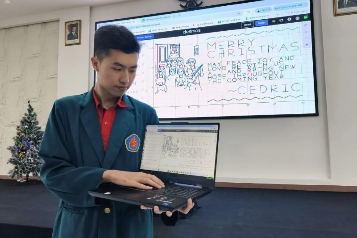 Surabaya (ANTARA) - Mahasiswa Fakultas Teknik Informatika Universitas Surabaya (Ubaya) Cedric Gratia Tjia menciptakan lukisan ilustrasi Natal berbasis persamaan matematika sebagai dedikasi untuk mendiang ayahnya, memadukan kecintaan pada matematika dan seni.