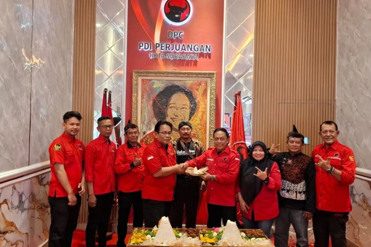 Surabaya (ANTARA) - Dewan Pimpinan Cabang Partai Demokrasi Indonesia Perjuangan (DPC PDIP) Surabaya meneguhkan ideologi politik saat peringatan Hari Ulang Tahun (HUT) ke-53 partai berlambang banteng tersebut.