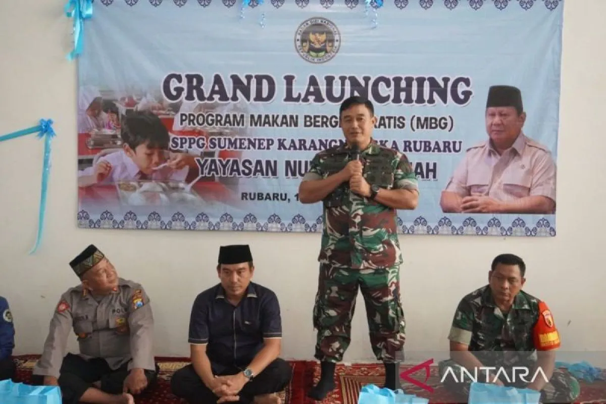 "Ini kami lakukan karena Program MBG ini memiliki peran penting dalam mendukung tumbuh kembang anak, sesuai dengan visi Presiden RI dalam menyiapkan generasi masa depan yang sehat dan cerdas," kata Komandan Kodim 0827 Sumenep Letkol Arm Bendi Wibisono saat menghadiri peluncuran Program MBG di Satuan Pelayanan Pemenuhan Gizi (SPPG) Yayasan Mitra Mandiri Nurul Karomah, Desa Bunbarat, Kecamatan Rubaru, Sumenep, Jawa Timur, Sabtu.