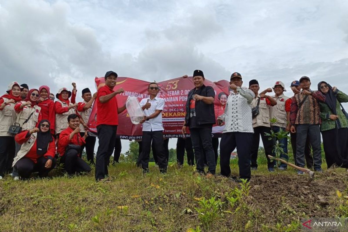 Bojonegoro (ANTARA) - Dewan Pimpinan Cabang (DPC) Partai Demokrasi Indonesia Perjuangan (PDIP) Kabupaten Bojonegoro menabur benih ikan dan melakukan penanaman pohon dalam rangka memperingati Hari Ulang Tahun (HUT) ke-53 partai berlambang banteng hitam dan moncong putih tersebut.