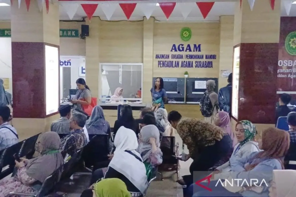 Surabaya (ANTARA) - Pengadilan Agama (PA) Surabaya menerima sekitar 6.080 permohonan cerai sepanjang 2025 yang meningkat dibandingkan tahun sebelumnya yakni tercatat sebanyak 5.644 perkara.