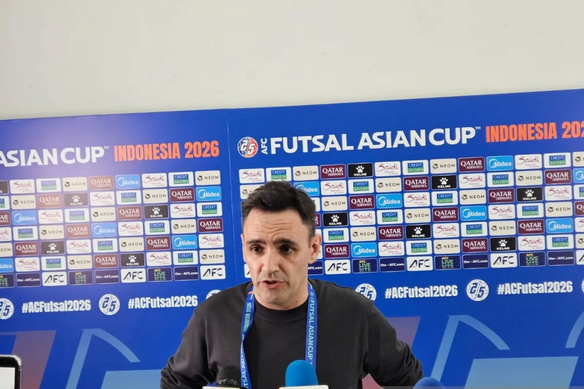 Pelatih timnas futsal Indonesia Hector Souto menjawab pertanyaan para pewarta setelah pertandingan Grup A Piala Asia Futsal 2026 antara Indonesia melawan Kirgistan di Indonesia Arena, Jakarta, Kamis (29/1/2026). (ANTARA/RAUF ADIPATI)