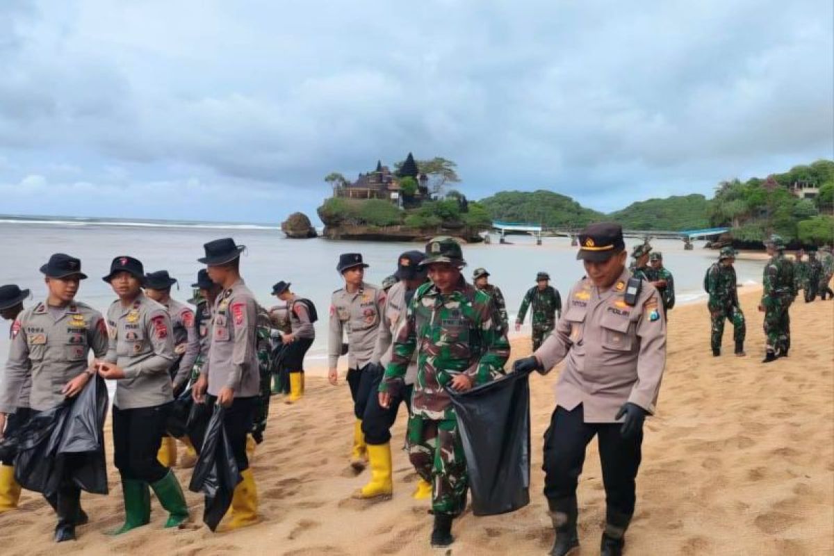 Malang, Jawa Timur (ANTARA) - Kepolisian Resor (Polres) Malang bersama TNI dan pemerintah kabupaten (pemkab) setempat melaksanakan kegiatan bersih-bersih di kawasan Pantai Balekambang, Kabupaten Malang, Jawa Timur sebagai bentuk dukungan terhadap Gerakan Aman, Sehat, Resik dan Indah (ASRI), Jumat.