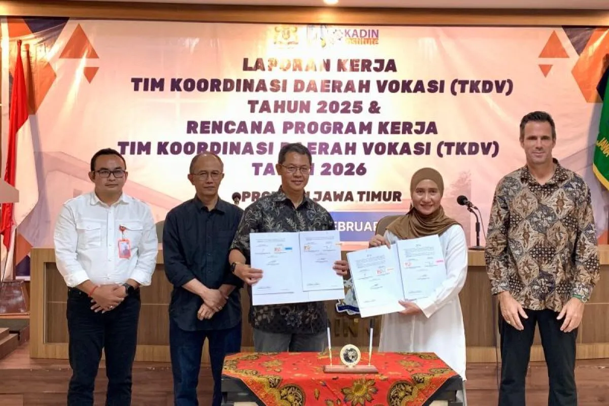 Surabaya (ANTARA) - Kamar Dagang dan Industri Jawa Timur (Kadin Jatim) bersama Tim Koordinasi Daerah Vokasi (TKDV) Jawa Timur memantapkan penguatan program vokasi dengan menargetkan pembentukan TKDV di 38 kabupaten/kota rampung pada 2026.