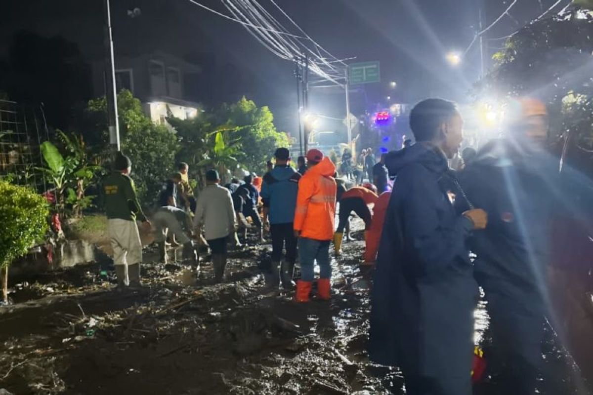 Malang, Jawa Timur (ANTARA) - Tim gabungan dari berbagai unsur bergotong-royong melakukan pembersihan material yang terbawa banjir luapan di Desa Punten, Kota Batu, Jawa Timur, Senin.