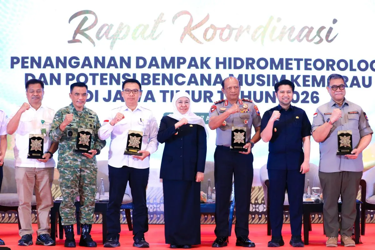 "Sebentar lagi musim kemarau, potensi-potensi bencana yang bisa terjadi, mari kita antisipasi bersama mulai saat ini," kata Gubernur Jatim Khofifah saat Rapat Koordinasi (Rakor) Penanganan Dampak Hidrometeorologi dan Potensi Kemarau Panjang 2026 di Surabaya, Selasa.