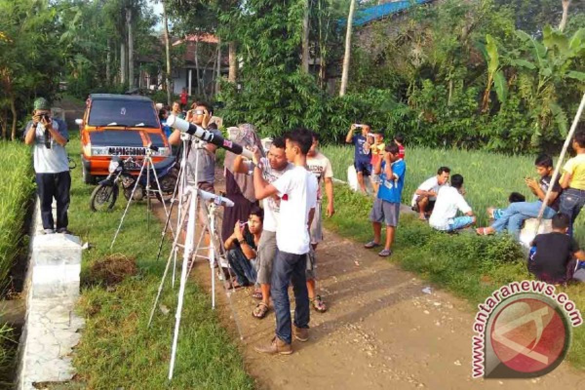Trenggalek (Antara Jatim) - Sejumlah pegiat astronomi di Kabupaten Trenggalek, Jawa Timur melibatkan belasan siswa SD dan SMP saat Mengamati gerhana matahari menggunakan teleskop sederhana di areal persawahan terbuka di daerah itu, Rabu.