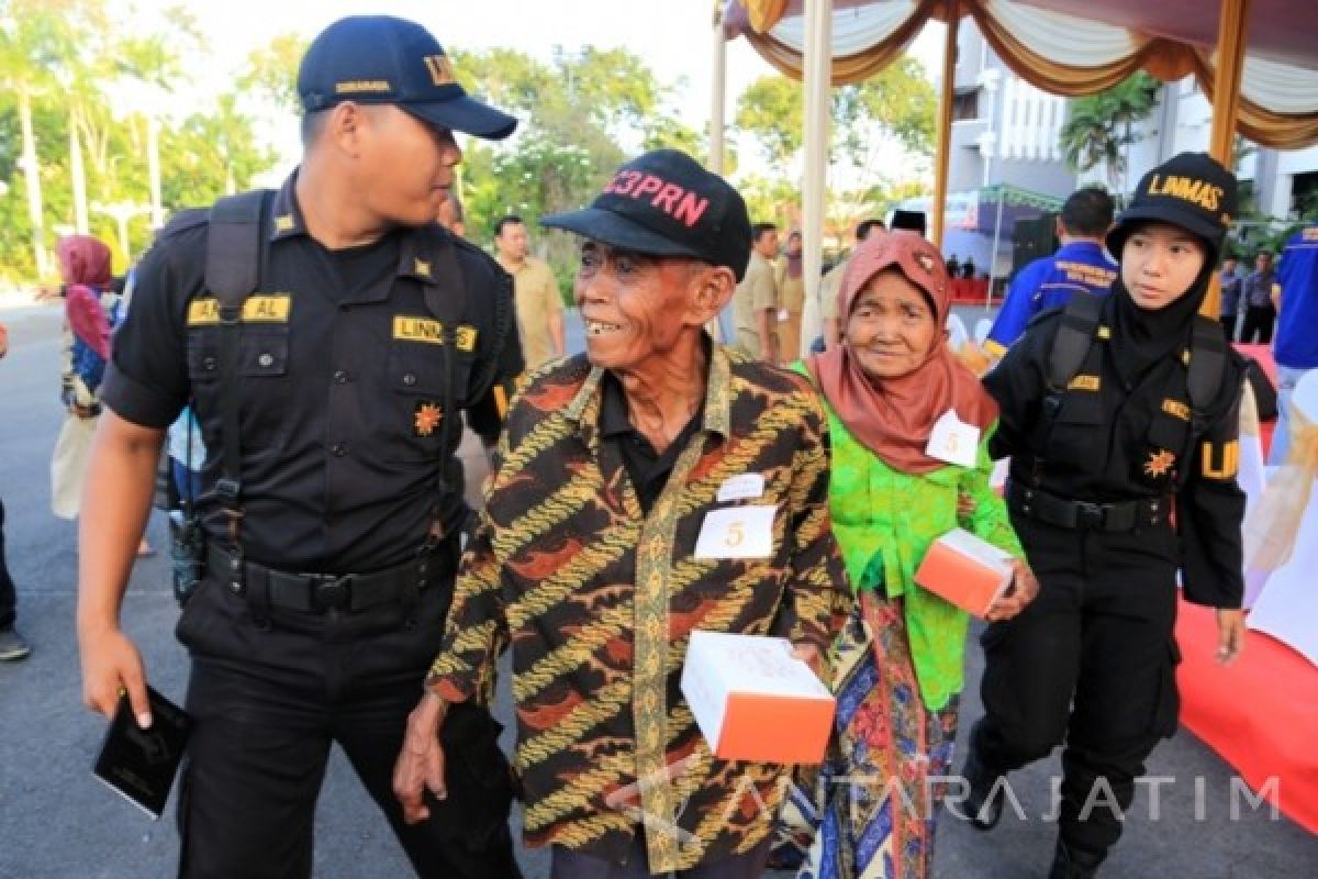 Sekitar 54 penyandang masalah kesejahteraan sosial (PMKS) yang terjaring razia aparat keamanan di jalanan Kota Surabaya, Senin, dipulangkan ke daerah asalnya. (Abdul Hakim)