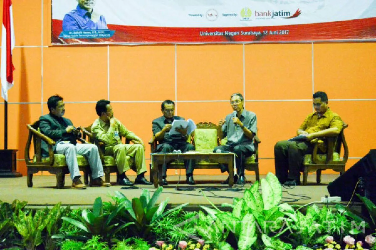 Surabaya (Antara Jatim) - Rektor Universitas Negeri Surabaya (Unesa) Prof Warsono meluncurkan buku tentang Pancasila yang berjudul "Pancasila-isme dalam Dinamika Pendidikan" di kampus Unesa Surabaya, Senin.