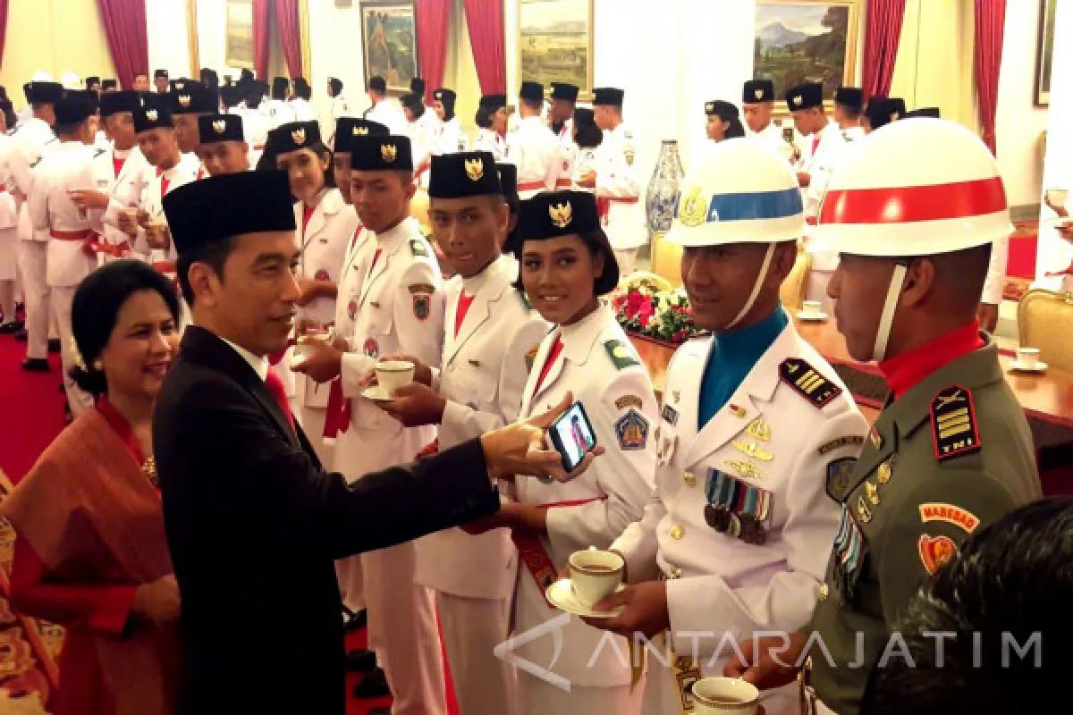 Menurut laporan Antara di Jakarta pada Selasa, Presiden menyambangi para anggota Paskibraka yang berdiri mengelilingi meja makan di ruangan yang ada di Istana Negara.