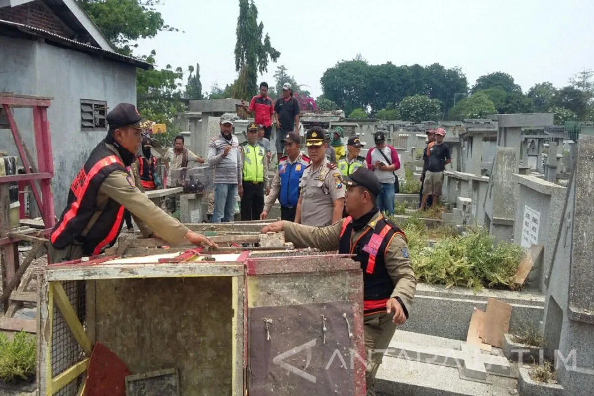Setelah memusnahkan kandang-kandang burung merpati di sisi timur, petugas bergerak menuju sisi barat Kompleks Makam Kembang Kuning.