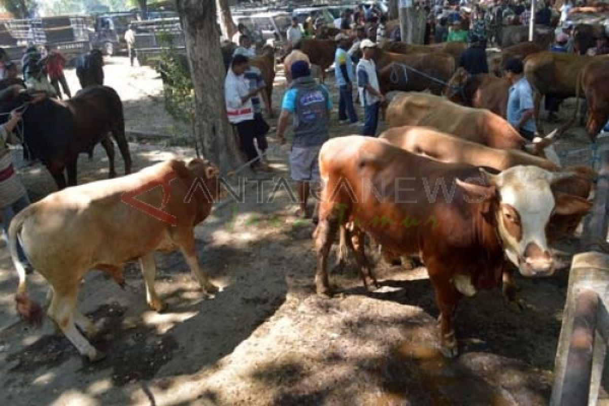 Madiun (Antara Jatim) - Sejumlah orang melakukan transaksi di pasar hewan Kota Madiun, Jumat (26/9). Menurut pedagang, menjelang Hari Raya Idul Adha, harga sapi rata-rata naik sekitar Rp1 juta perekor seiring dengan meningkatnya permintaan hewan untu