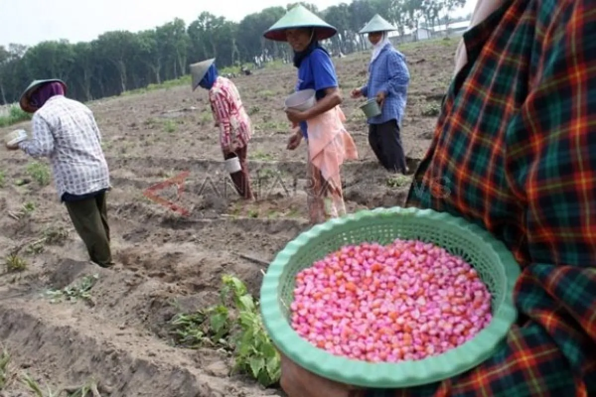 Kediri (Antara Jatim) - Sejumlah buruh tani perempuan menabur (icir) benih jagung saat proses tanam tanaman jagung di Kediri, Jawa Timur, Minggu (16/11). Petani di daerah tersebut memilih menanam jagung ketimbang menanam padi atau tanaman buah-buahan