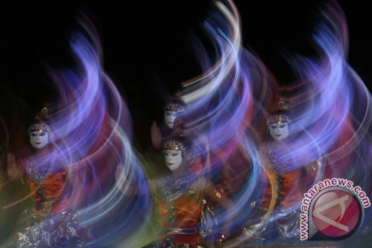 Sejumlah pelajar beserta guru memperagakan tari kolosal bertajuk 'Tari Topeng Seribu Panji' di Stadion Brawijaya, Kota Kediri, Jawa Timur, Jumat (27/11) malam. Tari kolosal yang melibatkan pelajar dan guru se kota Kediri tersebut bertujuan mengingatkan kembali kepada masyarakat bahwa kota kediri memiliki julukan Bumi Panji sekaligus mensosialisasikan Tari Topeng Panji sebagai tari khas Kota Kediri yang akan dikukuhkan tahun 2016 mendatang. Antara jatim/Prasetia Fauzani/zk/15