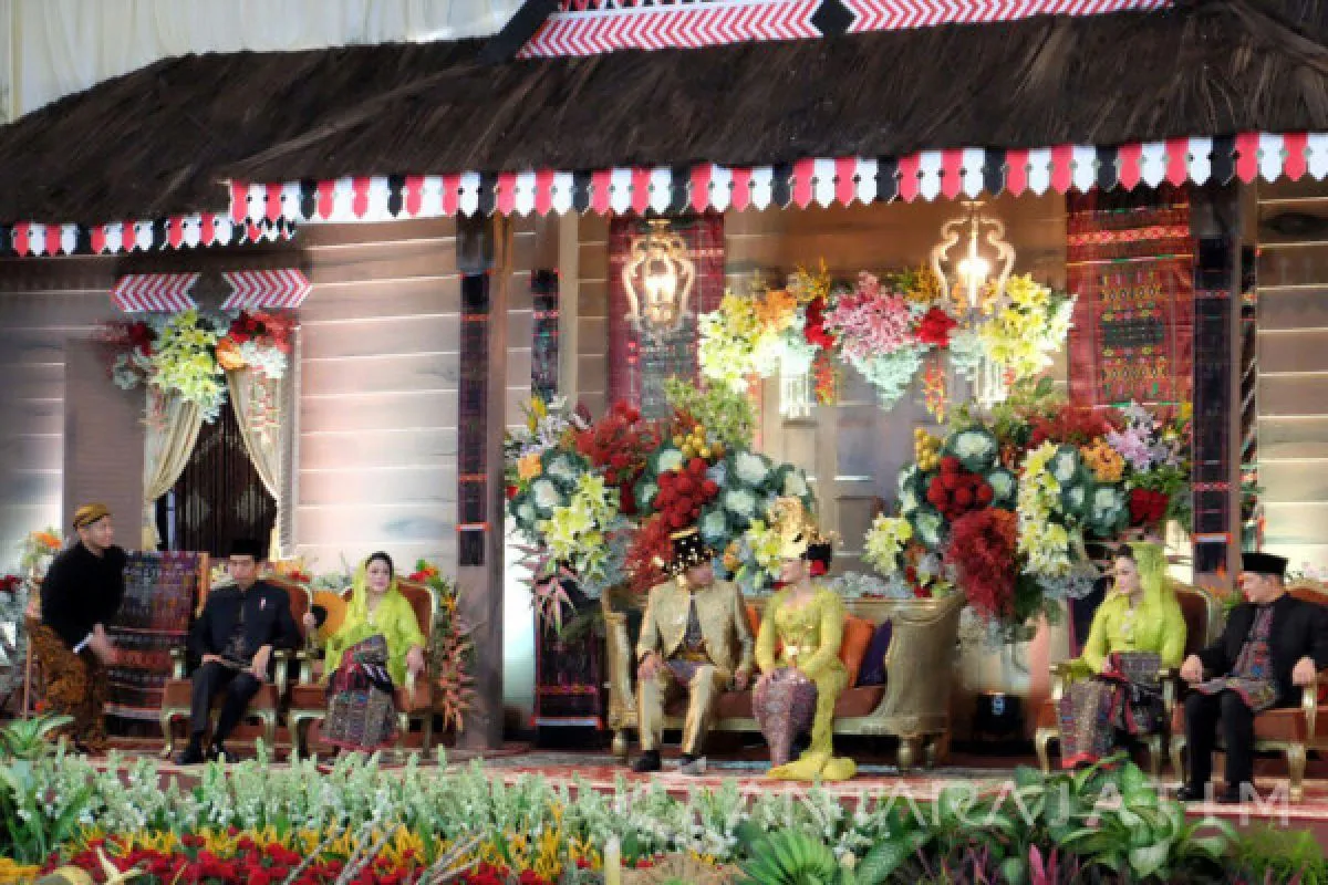 Medan, (Antara) - Tenda resepsi pernikahan Kahiyang Ayu dan Bobby Nasution di Medan, Minggu, dihias nuansa nusantara yang memadukan sejumlah kebudayaan.