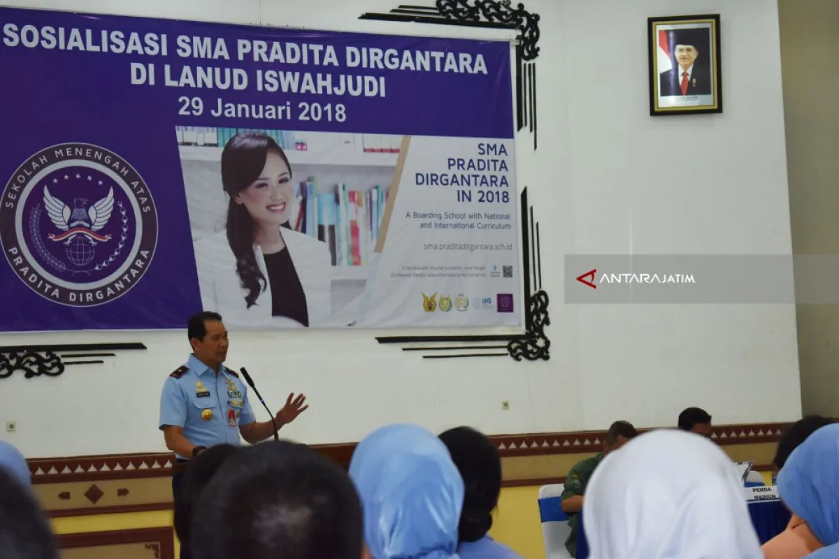 Magetan (Antaranews Jatim) – TNI AU menggelar sosialisasi berdirinya sekolah unggulan milik TNI AU, yakni SMA Pradita Dirgantara, di Gedung Graha Dewanto Lanud Iswahjudi Magetan, Jawa Timur, Senin.
