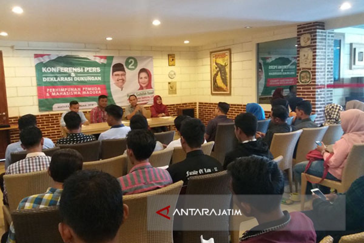 Para pemuda dari berbagai kabupaten di Madura, serta pemuda perantauan dari luar Madura dari sejumlah perguruan tinggi di Indonesia, hadir dalam deklarasi itu, sebagai wujud komitmen dan dukungan pada Calon Gubernur dan Wakil Gubernur Jatim nomor urut 2 tersebut. (*)