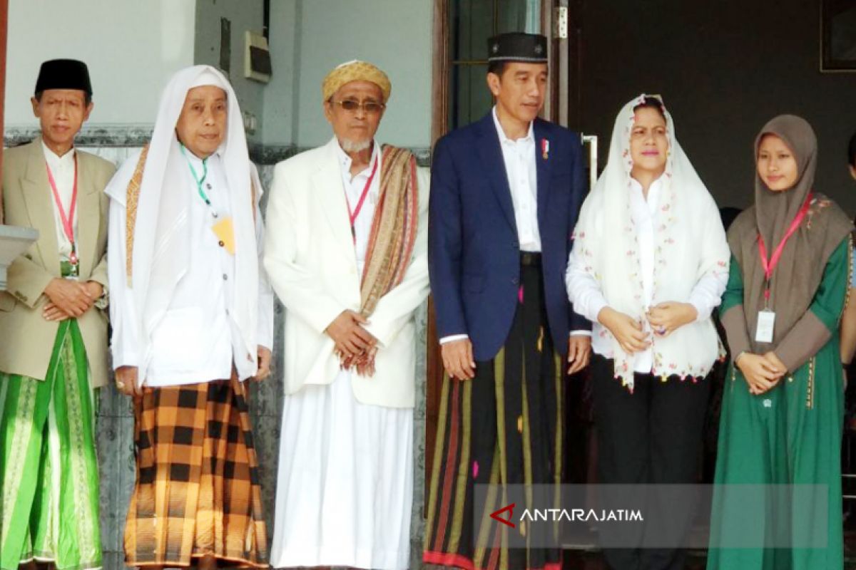 Presiden yang datang bersama dengan Ibu Negara Iriana Joko Widodo dan Menteri Sekretaris Negara Pratikno itu diterima oleh pengasuh ponpes Kiai Haji Masbuchin Faqih.