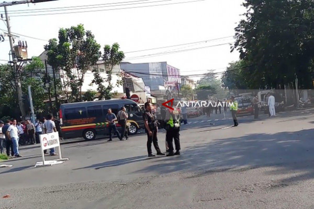 Surabaya (jatim.antaranews.com) - Bom meledak di depan Gereja Santa Maria Tak Bercela Surabaya, Minggu sekitar pukul 07.30 WIB.