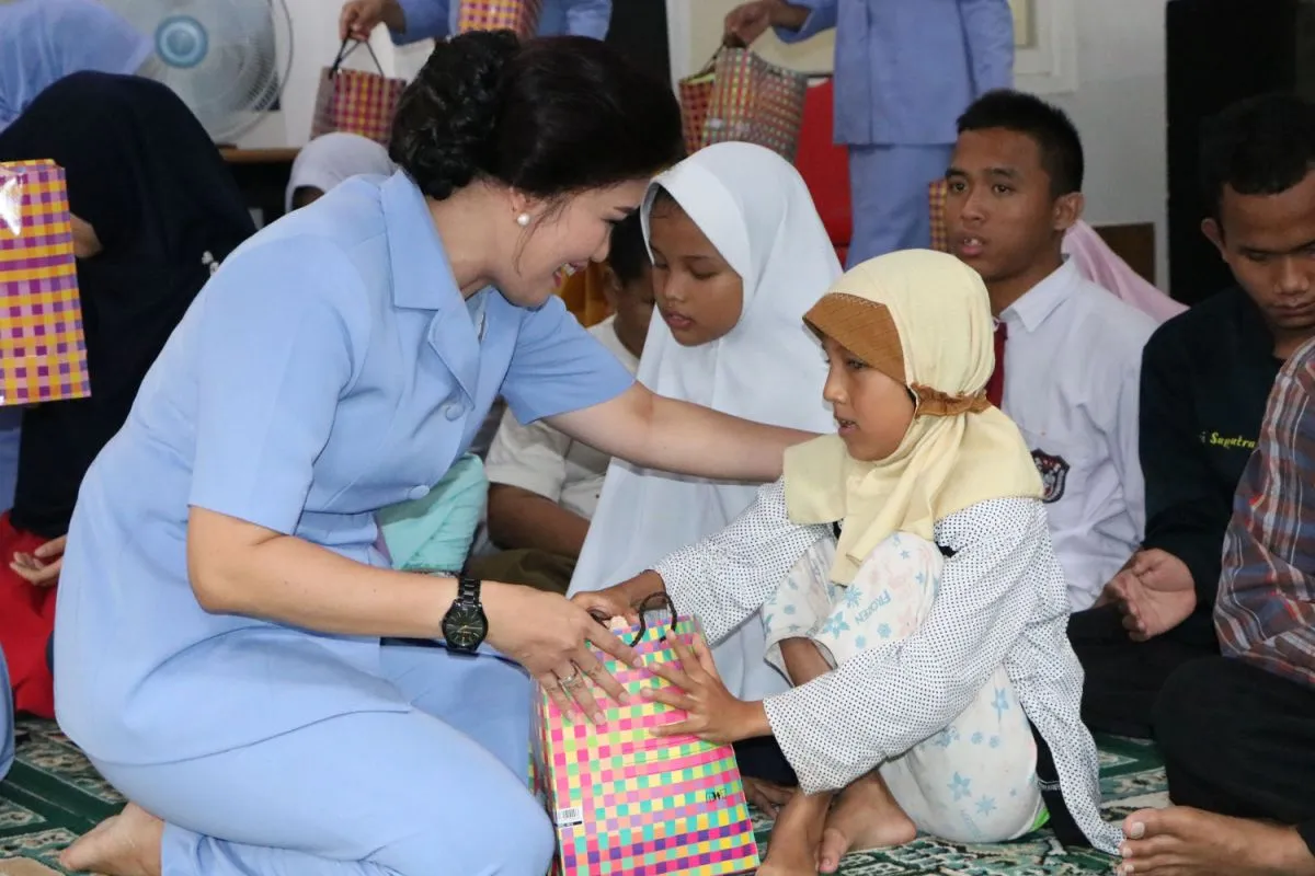 Pada kesempatan tersebut, Yanti Ikoputra memberikan tali asih kepada pengurus panti asuhan yang diserahkan secara simbolis kepada pengasuhnya, Hadianto.