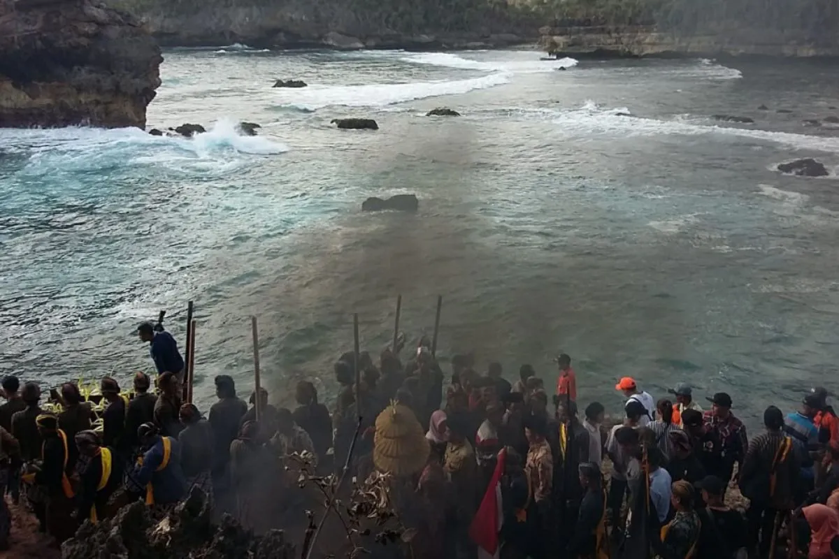 Prosesi Larung Gunung Kumbang, di Pantai Ngliyep, Desa Kedungsalam, Kecamatan Donomulyo, Kabupaten Malang, Jumat (23/11/2018) (Humas Pemerintah Kabupaten Malang)