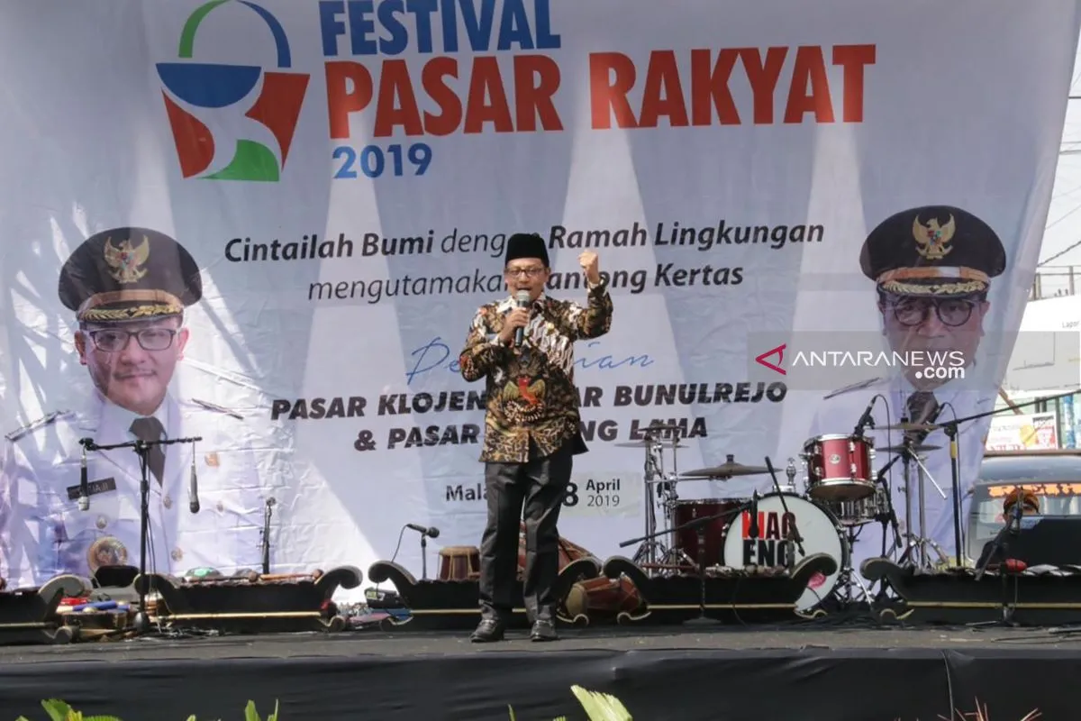Wali Kota Malang Sutiaji, saat menyampaikan sambutan pada Festival Pasar Rakyat dan peresmian sejumlah pasar program revitalisasi, di Pasar Klojen, Kota Malang, Kamis, (18/4/2019) (Humas Pemerintah Kota Malang)