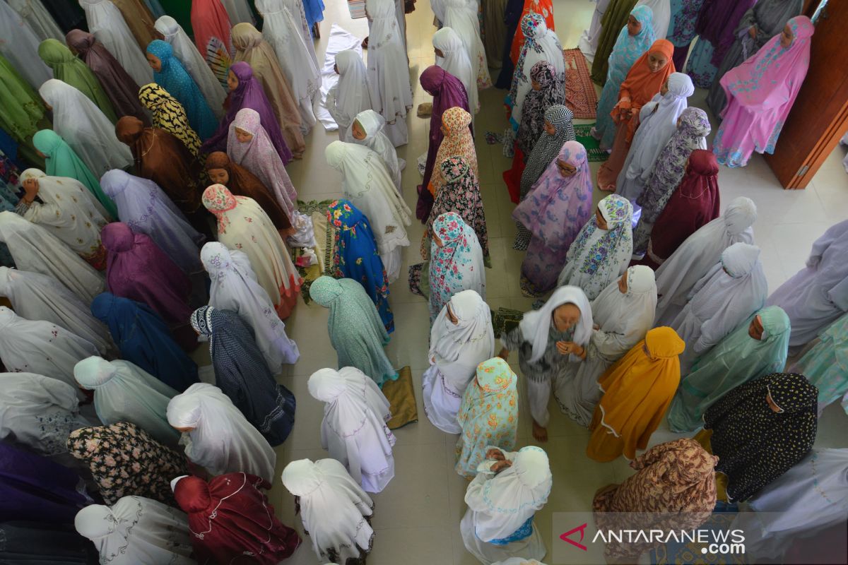 Siswa Madrasah Aliyah Negeri (MAN) Pondok Pesantren Bahrul Ulum Tambakberas menggelar shalat ghaib di Jombang, Jawa Timur, Selasa (6/8/2019). Shalat ghaib itu untuk mendoakan almarhum Pimpinan Pondok Pesantren Al-Anwar Sarang, Rembang, Maimun Zubair atau Mbah Moen yang wafat saat menunaikan ibadah haji di Makkah. Antara Jatim/Syaiful Arif/zk