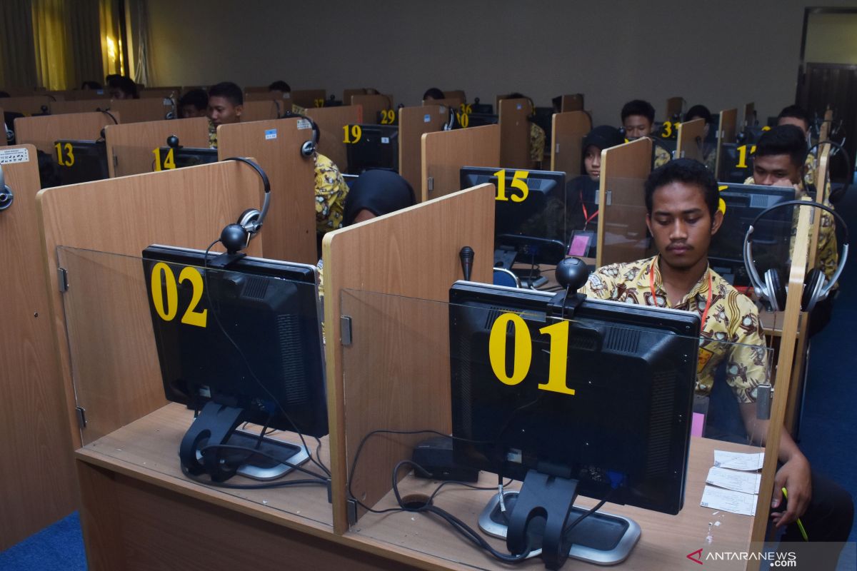 Siswa mengikuti simulasi Ujian Nasional Berbasis Komputer (UNBK) di SMA Negeri 3 Taruna Angkasa Jawa Timur di Madiun, Jawa Timur, Kamis (7/11/2019). Simulasi UNBK yang diikuti 296 siswa tersebut dimaksudkan untuk memperkenalkan system ujian berbasis komputer kepada siswa sebelum mengikuti UNBK. Antara Jatim/Siswowidodo/zk.