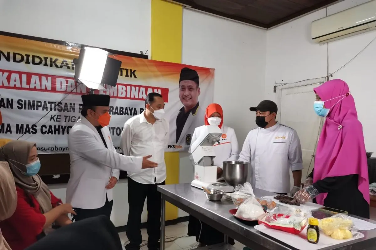 Wali Kota Surabaya Eri Cahyadi melihat kegiatan cooking class saat safari politik di kantor DPD PKS Surabaya, Kamis (25/3/2021). (fOTO ANTARA/HO-PKS Surabaya)