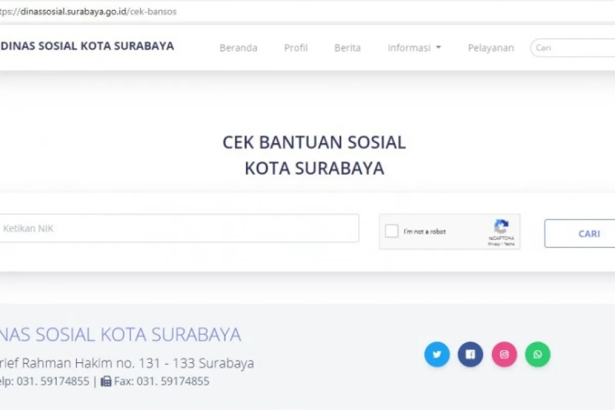 Surabaya (ANTARA) - Data warga penerima bantuan sosial (bansos) di Kota Surabaya, Jawa Timur, bisa dicek melalui laman yang disediakan dinas sosial (dinsos) setempat yakni https://dinassosial.surabaya.go.id/cek-bansos.
