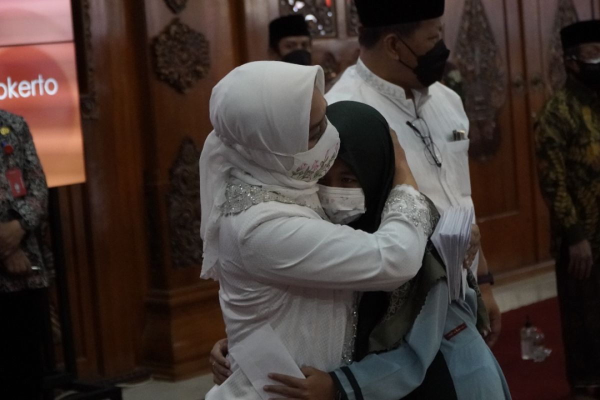 Pemandangan haru itu terlihat jelas saat acara doa munajat dan pemberian santunan anak yatim dari Korpri bersama Wali Kota Mojokerto dan Wakil Wali Kota Achmad Rizal Zakaria di Pendapa Sabha Kridatama, Rumah Rakyat, Jumat (20/8) sore.