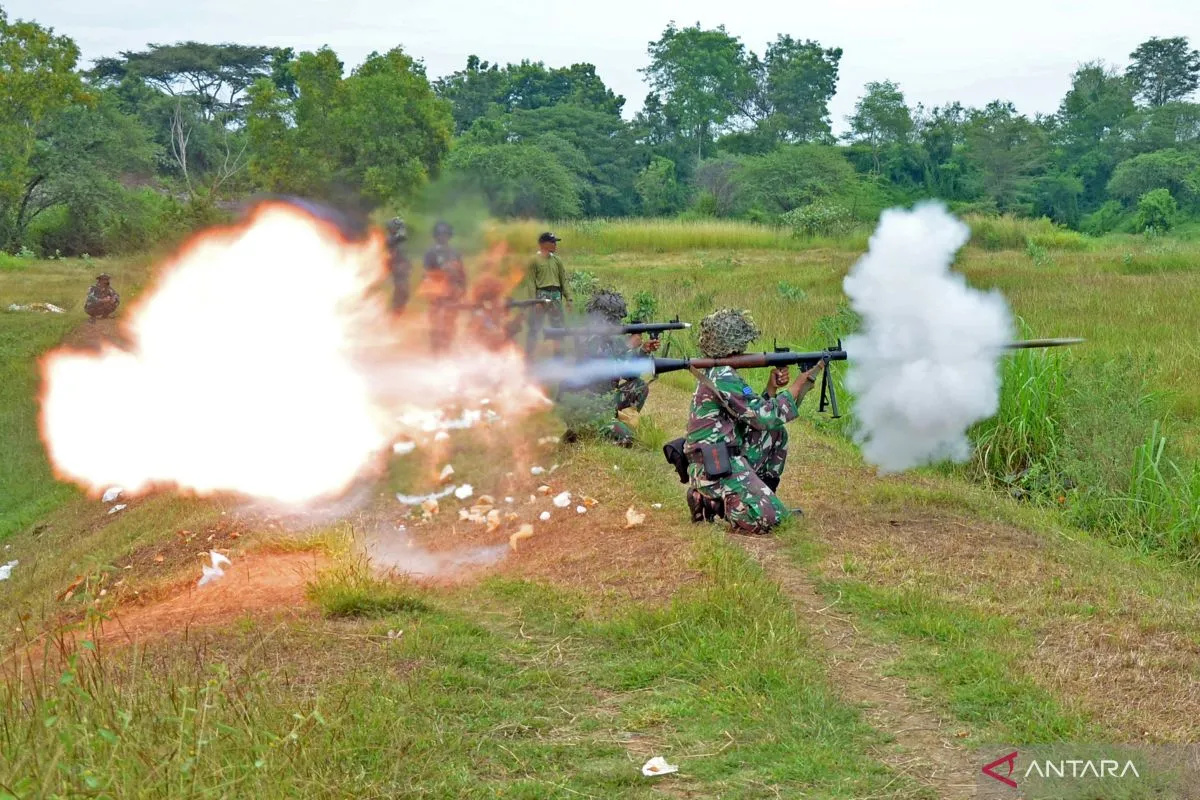Prajurit Brigif 2 Marinir Latihan menembak granat peluncur roket anti Personel dan Tank di Pusat Latihan Pertempuran (Puslatpur) Marinir 3 Grati, Pasuruan, Jawa Timur, Rabu (20/4/2022). Latihan penembakan yang bertujuan melatih ketangkasan para prajurit tersebut merupakan bagian dari Latihan Perorangan Kesenjataan Brigif 2 Marinir pada Tri Wulan I Tahun 2022. Antara Jatim/Kopda Mar Moch Ainul Yakin/zk