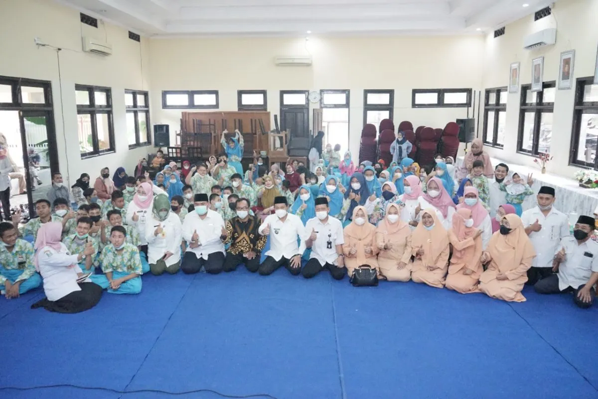 Kepala Sekolah SLB Negeri Gedangan Miseri bersyukur dengan kehadiran Wabup Subandi yang langsung menyapa seluruh muridnya.