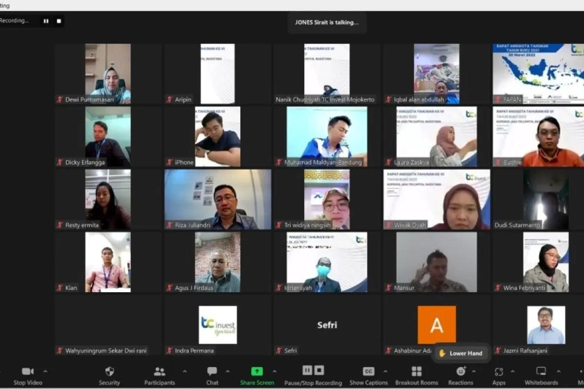 RAT dihadiri anggota TC Invest secara daring melalui Zoom dari lima area, masing-masing Jakarta-Banten yaitu Jakarta dan Tangerang, Jawa Barat yaitu Bandung, Jatim I yaitu Mojokerto dan Bali, Jatim 2 yaitu Surabaya dan Malang, serta Kalimantan Barat yaitu Pontianak dan Singkawang. Plus dengan Lampung.