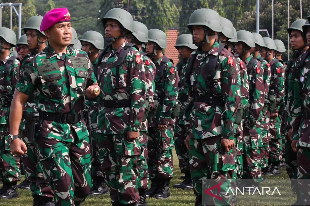 Komandan Komando Pembinaan Doktrin Pendidikan dan Latihan TNI Angkatan Laut (Dankodiklatal) Letnan Jenderal TNI Marinir Suhartono (kiri) menginspeksi sejumlah siswa (calon anggota) Komponen Cadangan (Komcad) Matra Laut TNI AL saat upacara pembukaan Pelatihan Dasar Kemiliteran Komcad Matra Laut TNI AL Tahun 2023 di Komando Pendidikan Marinir (Kodikmar), Surabaya, Jawa Timur, Senin (8/5/2023). ANTARA/HO-Didik Suhartono