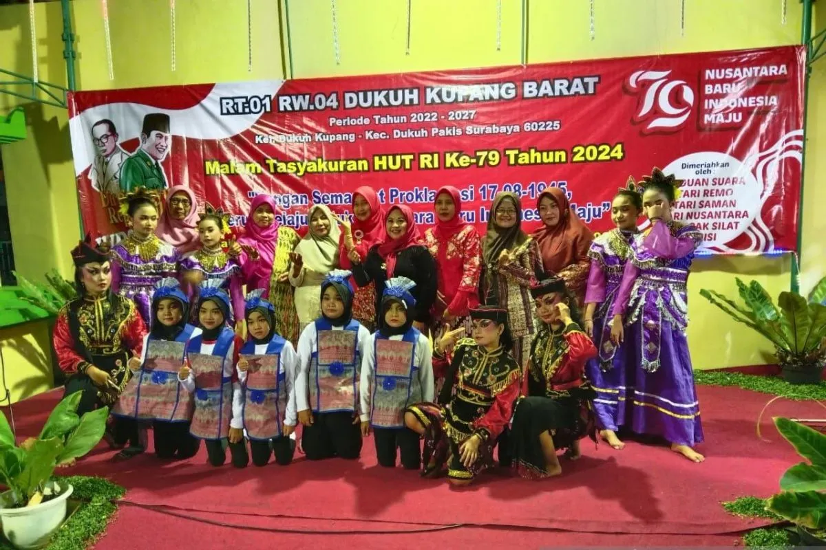 Peserta pagelaran budaya dan kesenian masyarakat RT 1 RW 4 Kelurahan Dukuh Pakis dalam rangka memperingati HUT Ke-79 RI, Jumat (16/8/2024). (ANTARA/HO-Dokumentasi RT 1)