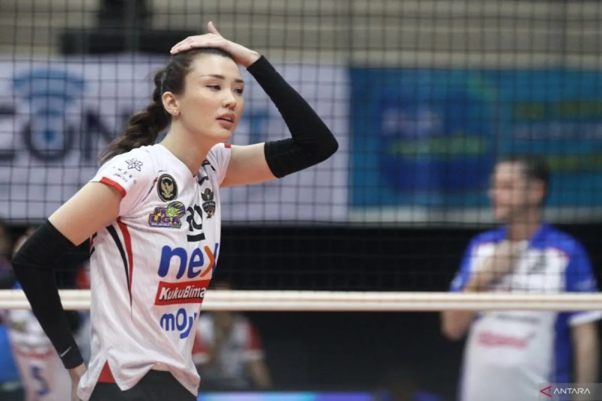 Ekspresi pevoli putri Yogya Falcons Sabina Altynbekova usai gagal meraih poin saat laga melawan tim Jakarta Pertamina Enduro dalam pertandingan Proliga 2025 Putaran Pertama Minggu Ketiga di GOR Ken Arok, Malang, Jawa Timur, Minggu (19/1/2025). Jakarta Pertamina mengalahkan Yogya Falcon dengan skor 3-0 (25-17, 25-14, 25-17). ANTARA Jatim/Ari Bowo Sucipto/mas.