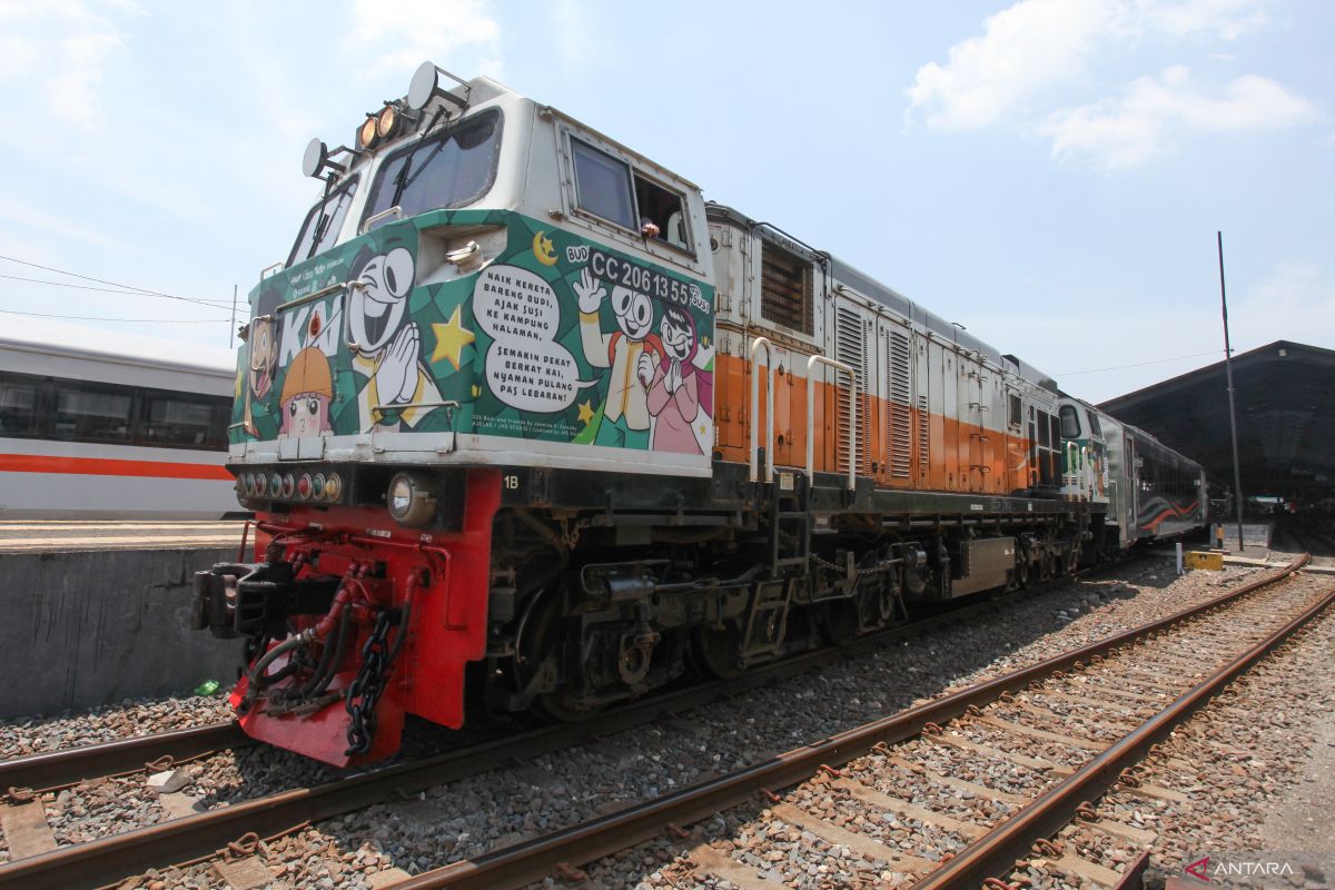 KA Argo Anjasmoro melaju meninggalkan Stasiun Surabaya Pasar Turi, Surabaya, Jawa Timur, Jumat (21/3/2025). PT Kereta Api Indonesia mengoperasikan KA Argo Anjasmoro relasi Stasiun Surabaya Pasar Turi - Stasun Gambir, Jakarta (PP) untuk pertama kalinya guna memberikan pilihan jadwal perjalanan KA bagi pengguna jasa angkutan kereta api dengan kapasitas 450 tempat duduk kelas eksekutif. ANTARA Jatim/Didik Suhartono/mas.
