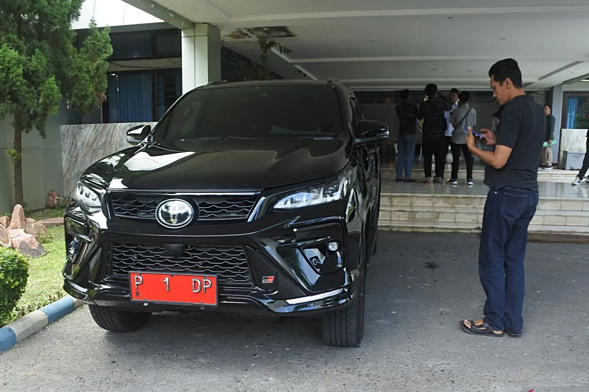 Wartawan mengambil gambar mobil dinas baru Bupati Situbondo dengan plat nomor P 1 DP di Pemkab Situbondo, Jawa Timur, Kamis (10/4/2025). Pembelian enam unit mobil dinas baru Toyota Fortuner seharga Rp3,9 miliar untuk Forum Koordinasi Pimpinan Daerah Kabupaten Situbondo, Jawa Timur, itu bertentangan dengan instruksi Presiden Prabowo Subianto mengenai efisiensi anggaran. Antara Jatim/Seno/mas.