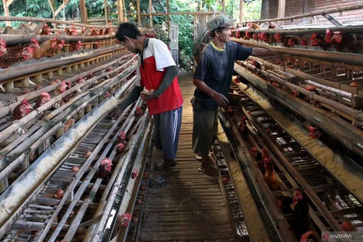 Peternak memanen telur ayam di peternakan ayam. Petelur di Wonokoyo, Malang, Jawa Timur, Selasa (29/4/2025). Peternak ayam petelur setempat mengeluhkan harga telur ayam di pasaran yang mengalami fluktuasi dengan kecenderungan turun dalam tiga pekan terakhir yakni dari Rp27 ribu per kilogram hingga sempat menyentuh harga Rp20.800 per kilogram sehingga peternak mengganti pakan jagung dengan tepung olahan untuk mengurangi biaya pakan. Antara Jatim/Ari Bowo Sucipto/um