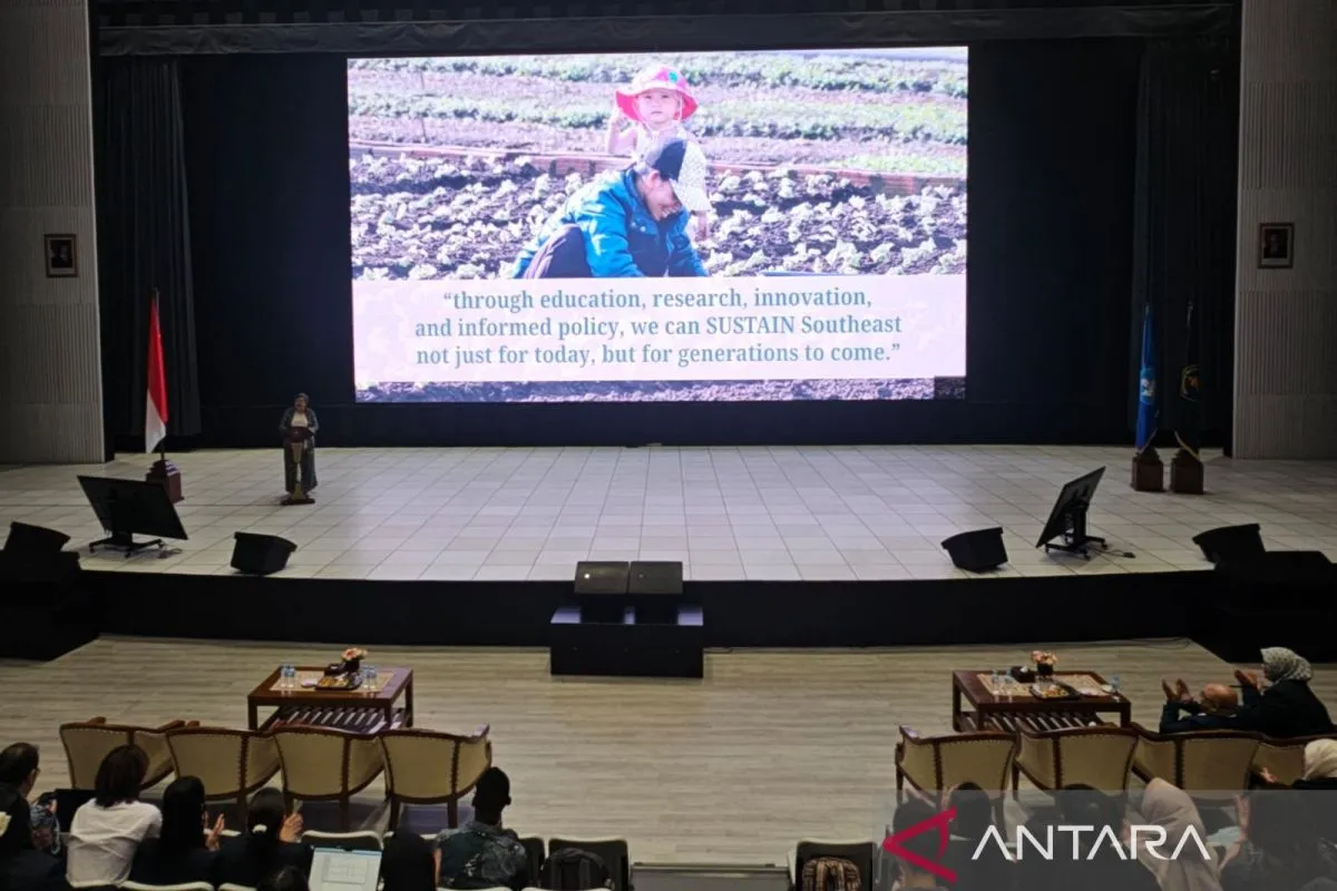 Pelaksanaan agenda "Opening SEARCA 10 UC Graduate Forum" yang dilaksanakan oleh Universitas Brawijaya bersama Pusat Regional Asia Tenggara untuk Studi dan Penelitian Pascasarjana Pertanian (SEARCA) di auditorium kampus tersebut, di Kota Malang, Jawa Timur, Senin (2/6/2025). ANTARA/Ananto Pradana