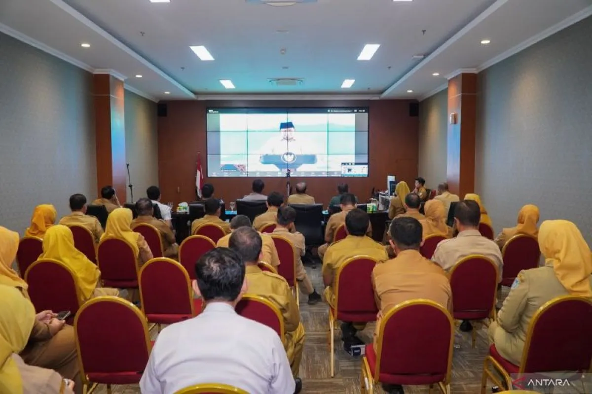 Sejumlah pejabat dan aparatur sipil negara di lingkungan Pemerintah Kabupaten Lamongan mengikuti peluncuran kelembagaan 80.000 Koperasi Desa/Kelurahan Merah Putih oleh Presiden RI Prabowo Subianto secara daring di Command Center Pemkab Lamongan, Jawa Timur, Senin (21/7/2025). (ANTARA/ Alimun Khakim)