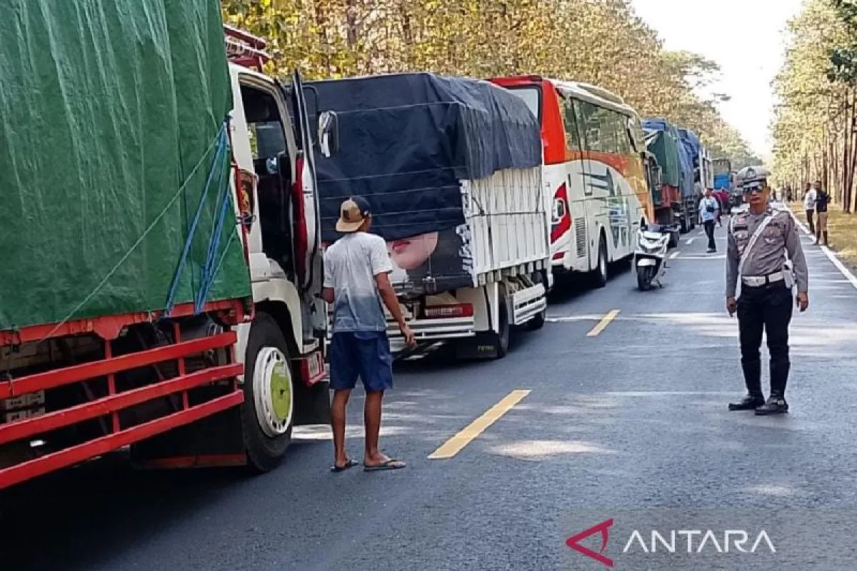 Situbondo (ANTARA) - Jalur pantura kawasan Taman Nasional Baluran Situbondo, Jawa Timur, Kamis, macet total dipicu antrean kendaraan logistik di pelabuhan penyeberangan Ketapang (Banyuwangi)-Gilimanuk (Bali).