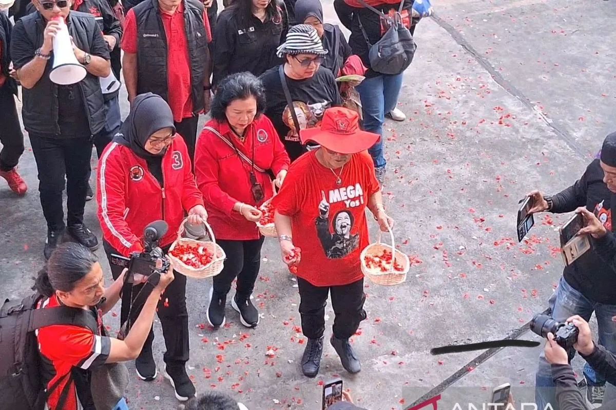 Usai doa, Ribka mengajak seluruh elite PDIP untuk memulai prosesi tabur bunga, dimulai dari gerbang depan kantor DPP PDIP, lalu dilanjutkan ke halaman dan area parkir kantor partai.