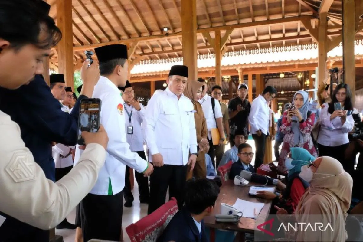Wamenag Romo H.R. Muhammad Syafi'i saat mengunjungi Ponpes Al Amanah Junwangi di Kecamatan Krian, Sidoarjo, Senin (4/8/2025), demi memastikan program CKG di wilayah terkait terlaksana dengan baik. (ANTARA/Fahmi Alfian)