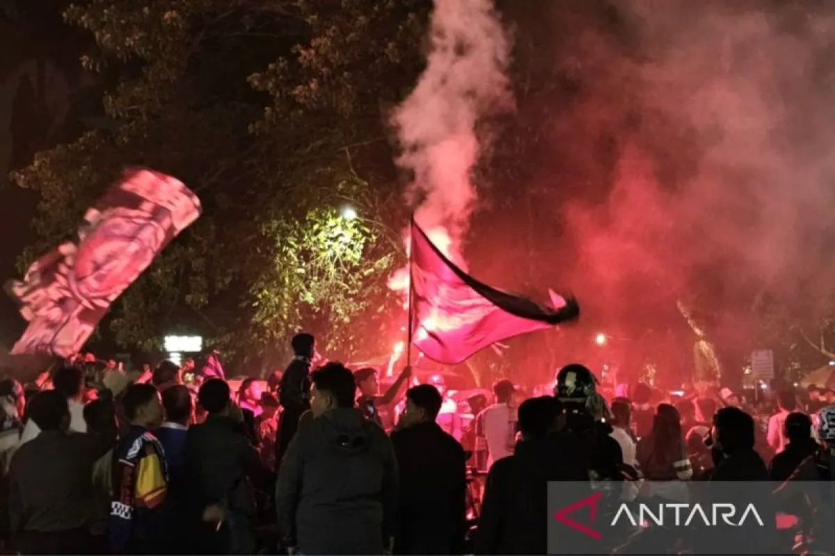 Pantauan ANTARA di Jalan Trunojoyo, sekitar pukul 20.39 WIB, Aremania tidak hanya berkumpul, tetapi juga mengibarkan bendera, membentangkan syal, hingga menyanyikan chant atau lagu dukungan yang biasa terdengar saat pertandingan kandang Arema FC.